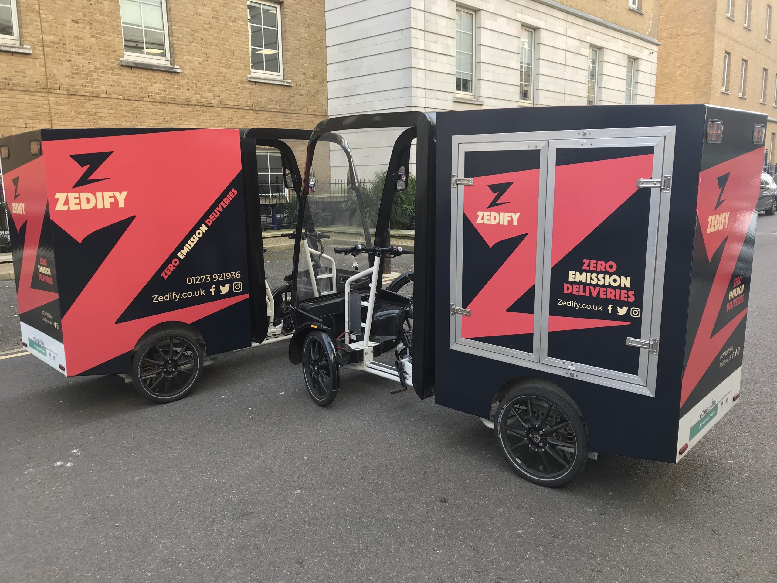 Zedify say, “The addition of five ecargo bikes to our fleet has almost doubles our capacity; we are now seeing higher density routes and new business opportunities arise due to our ability to collect and drop more orders across Brighton and Hove.” The additional capacity has also improved the service area and delivery turnaround times for local customers. The new ecargo bikes offer many advantages including: