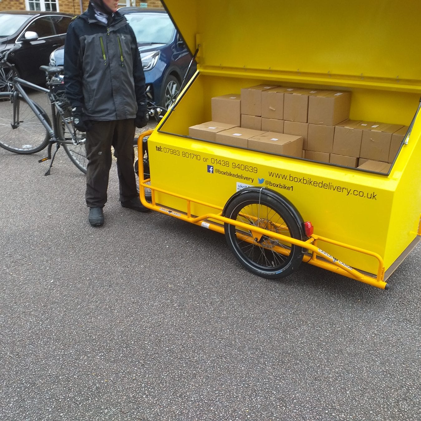 Founded in 2014, Box Bike Delivery is a Stevenage-based logistics company that specialises in sustainable last mile delivery. It operates a fleet of five ecargo bikes and an ecargo trailer, delivering parcels for a national carrier, medicines for a local pharmacy, deliveries for a range of local businesses and postal collections from offices and schools.